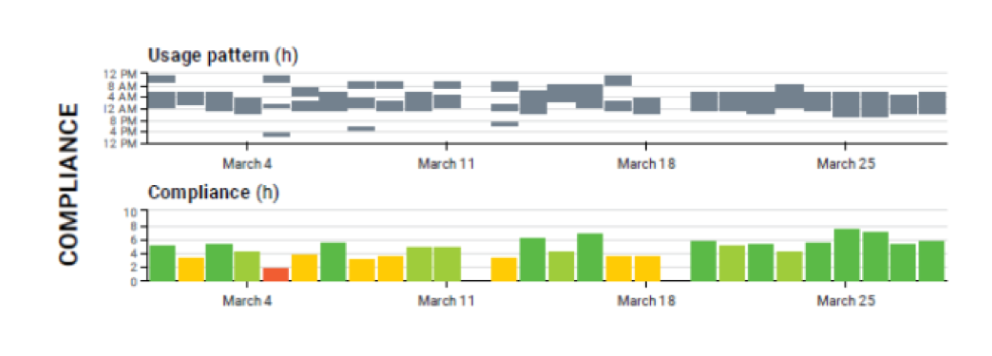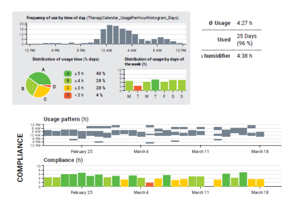 Patient showed good compliance during the first weeks, then usage time suddenly drops